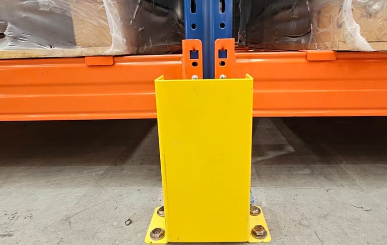 Es la primera línea de defensa para la estructura de tu almacén. Estos dispositivos están diseñados específicamente para absorber y desviar los impactos accidentales de montacargas y maquinaria pesada directamente en los puntos más críticos del rack.