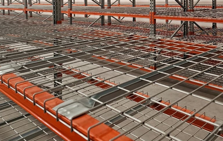 Mallas de seguridad (Wire mesh) Optimiza la superficie de carga y protege tu inventario. Nuestras mallas de acero electrosoldado proporcionan una base sólida y versátil para las tarimas, eliminando los riesgos asociados al uso de travesaños de madera o superficies inestables.