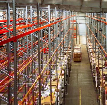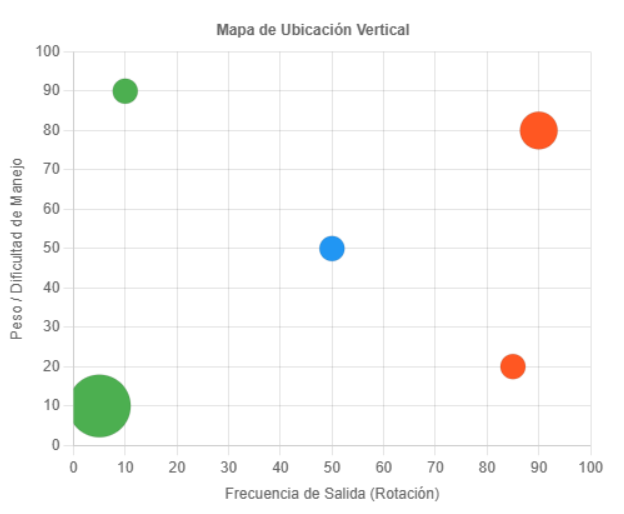 Baja rotación: Zonas altas o alejadas. Usar Racks Drive-In o Compactos. Prioridad: Densidad máxima.