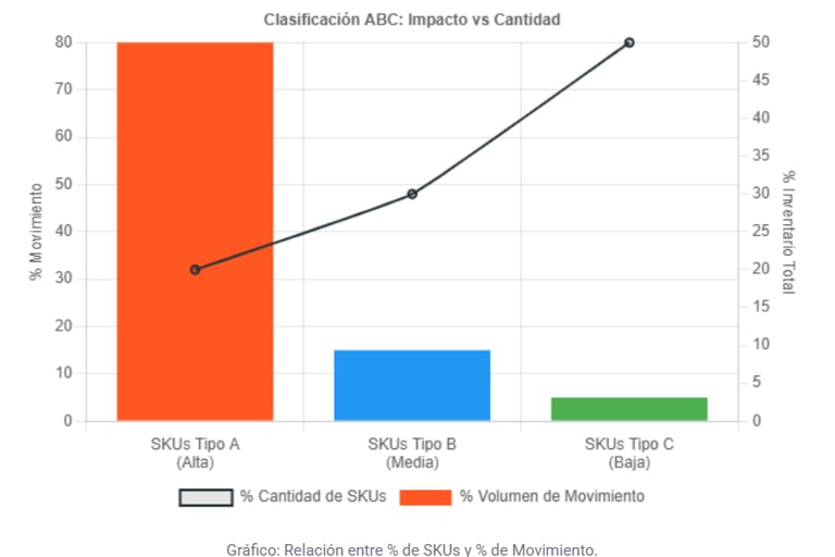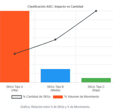 El 20% de sus SKUs generan el 80% del movimiento. Estos requieren acceso inmediato.