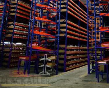Racks de alta densidad (dynamic / push back). Ingeniería avanzada diseñada para concentrar la mayor cantidad de posiciones posibles en la superficie mínima disponible. Utiliza carros o rodillos para gestionar el inventario por acumulación técnica, ideal para productos con alta densidad de pallets por SKU.