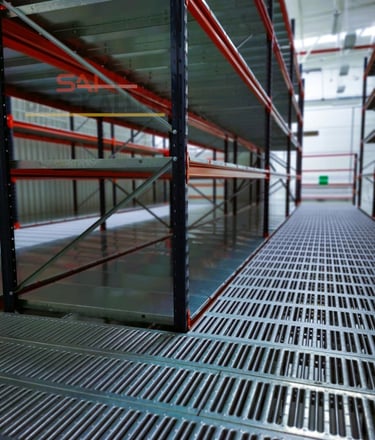 El Mezzanine o entrepiso industrial de SAIblackaller es la solución estratégica para empresas que necesitan expandirse sin los costos ni las complicaciones de una obra civil o una mudanza. Su mayor ventaja es el aprovechamiento inteligente de las superficies, ya que permite duplicar o triplicar el área útil al transformar la altura libre de la nave en nuevos niveles operativos para oficinas, zonas de picking o almacenamiento de carga. Al ser estructuras modulares y desmontables, ofrecen una agilidad y versatilidad superiores, permitiendo una instalación rápida que no detiene su operación y se adapta perfectamente al ritmo de crecimiento de su negocio.