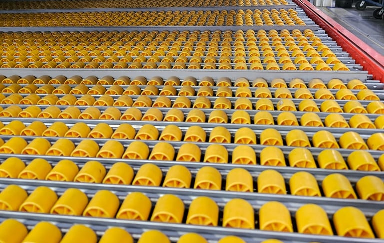 Carton flow (flujo de cajas). Sistema dinámico basado en la gravedad que utiliza rieles de rodillos para desplazar automáticamente las cajas hacia el frente de surtido. Es el motor de los almacenes que requieren una eficiencia crítica en el picking de alta rotación.